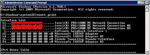 - Type route print, and look at the first lines that show the interfaces: